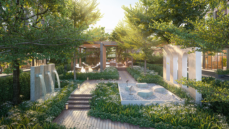Lấy cảm hứng từ hình ảnh những khu vườn thực vật rộng lớn tràn ngập hoa và cây xanh tại “Đảo quốc sư tử” Singapore, The Canopy Residences được kiến tạo với 3 tòa cao ốc hiện đại được bao phủ bởi những vòm cây rợp bóng. Những loài cây & hoa được nhập trực tiếp từ Singapore, đặc biệt là loài hoa lan, kết hợp hệ thống cây ánh sáng và các lớp tiện ích nội khu đa tầng được lồng ghép với nhau, đã tạo nên một “Ốc đảo xanh” The Canopy rất riêng biệt và ấn tượng.